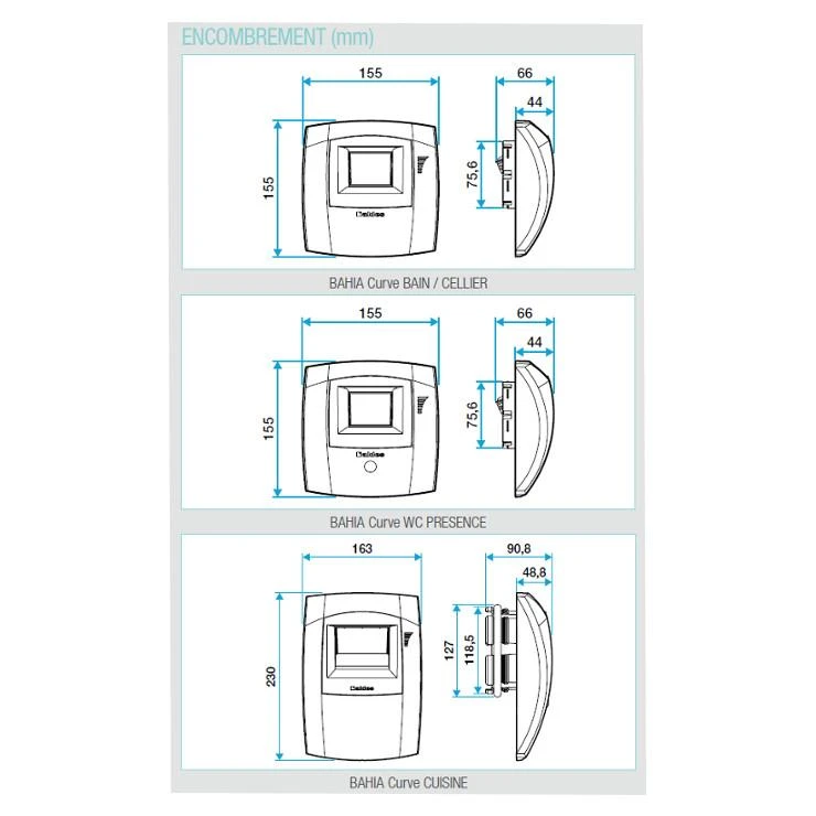 Bouches supplémentaires hygroréglables Aldes permettant de compléter les kits existants ou de rajouter au caisson VMC vendu seul. Kits Bahia Curve pour wc, salle de bains, cellier.