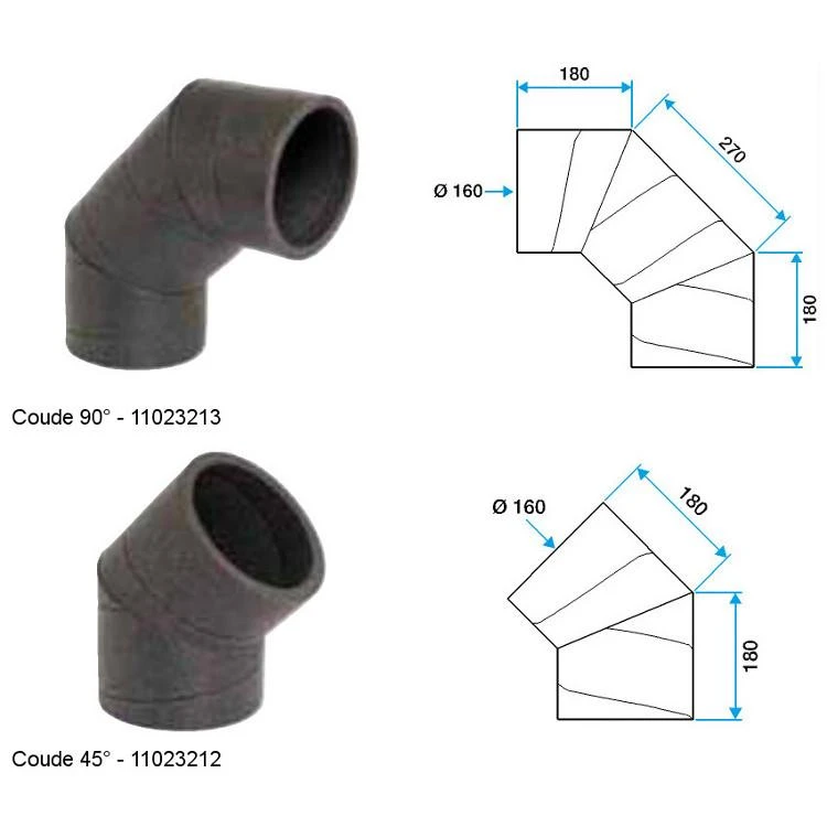 - Coudes à 90°, 45° ou 30°