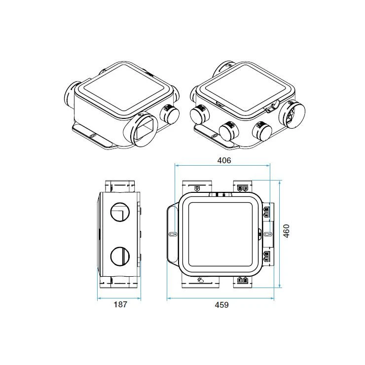 - Raccordement simplifié des conduits souples, grâce au système EasyCLIP Algaine fourni (raccord + collier rapide).
