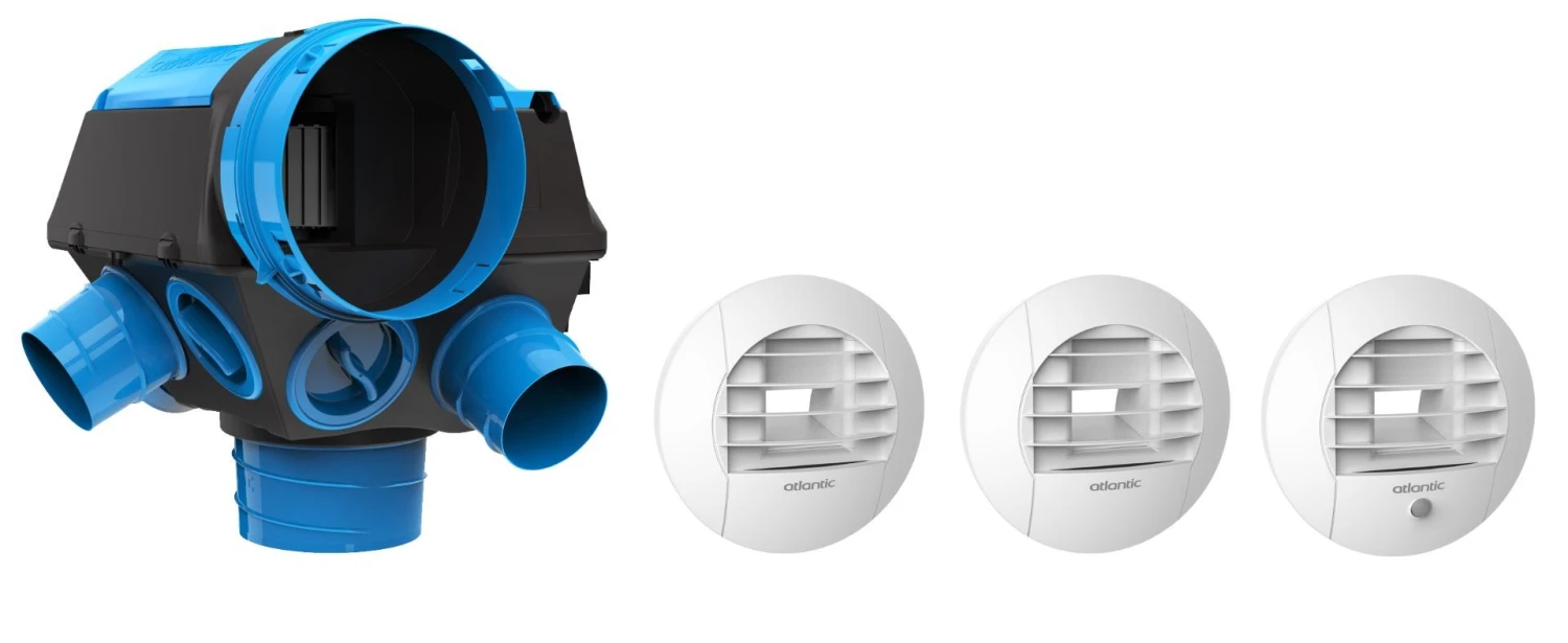 - VMC simple flux hygroréglable pour installation Hygro (type A et B) pour logement individuel, jusqu’à 6 sanitaires + 1 cuisine.