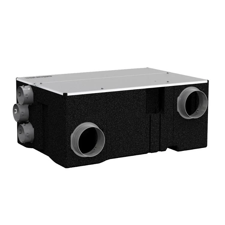 - Échangeur haut rendement 90% à contre-courant en plastique, moteurs basse consommation EC 2 vitesses