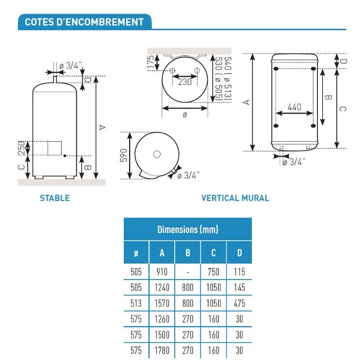 - Vertical mural de 100 à 200 litres