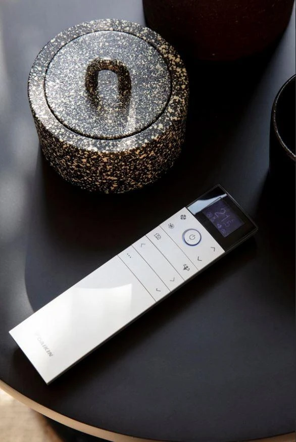 | Télécommande infrarouge de série: Grâce à son design simplifié, et son coloris assortie, la télécommande DAIKIN sera parfaite pour se fondre dans votre intérieur. Support murale aimanté pour être toujours à votre portée. | |