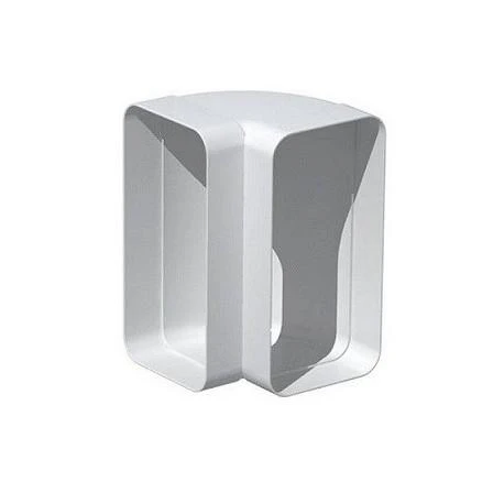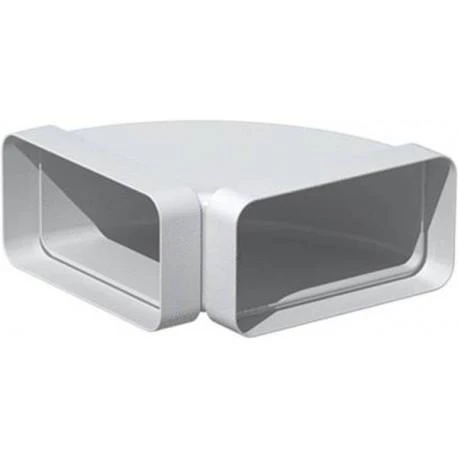 Coude horizontal rectangulaire TUB-PLA de marque Unelvent. Etanche à l’air, il permet de connecter les conduits PVC dans un réseau avec un angle de 90°. En résidentiel ou en tertiaire, il est très facile à installer dans les passages de dimensions réduites (faux plafond, cloison placo…)