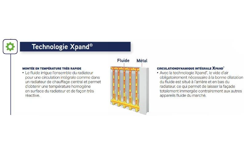 Une technologie brevetée:qui permet au fluide d’irriguer l’ensemble du radiateur en permanence pour une circulation intégrale.