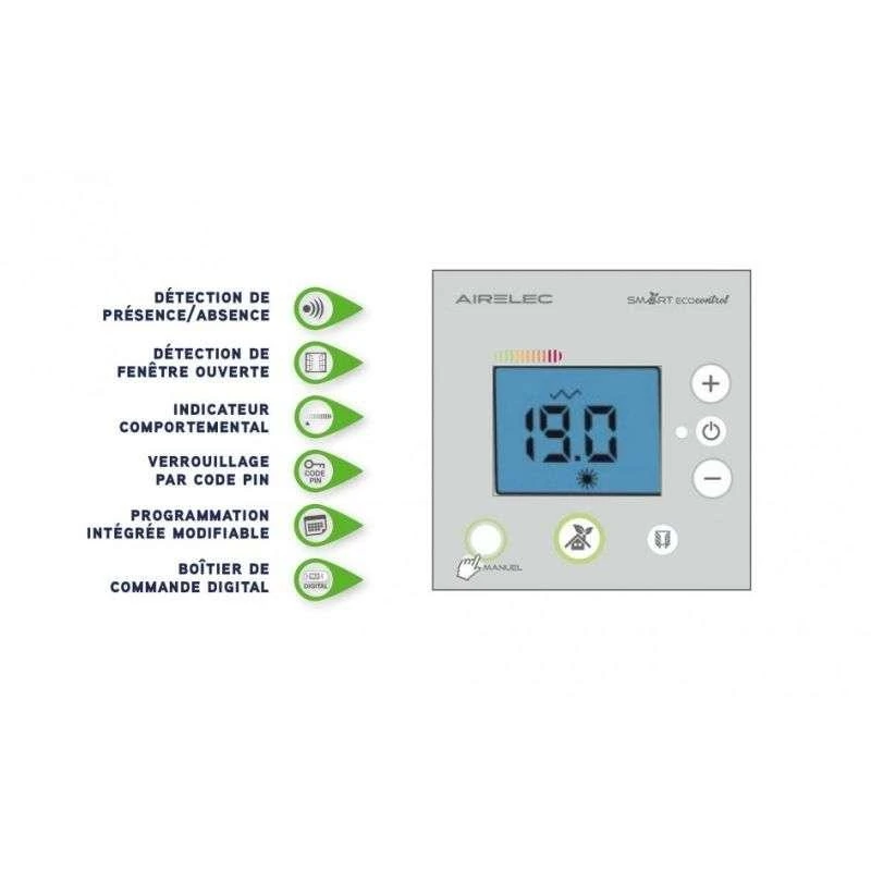 - Programmable sans limite par SMART ECOcontrol® et/ou fil pilote multitarif 6 ordres (Confort, Confort -1°C, Confort -2°C, Eco, Hors-gel, Arrêt chauffage).