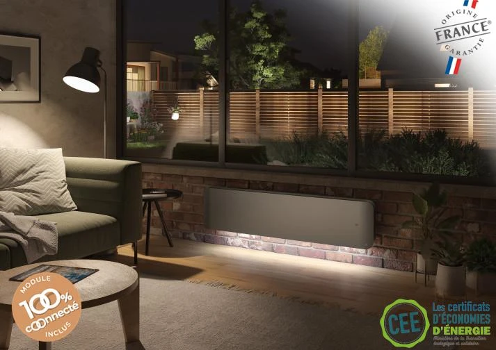 Le radiateur double corps de chauffe à inertie fonte et priorité façade avec lumière d’ambiance intégré Dook représente l’exigence d’un design moderne abouti. Connecté il est proposé en 3 modèles pour s’adapter à toutes les configurations d’espaces : horizontal, vertical et plinthe.