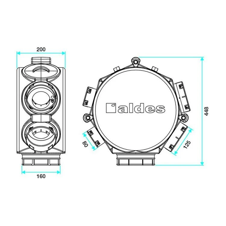 | Caractéristique produit Plenum VMC | 1 entrée Ø160 + 6 sorties Ø125 |